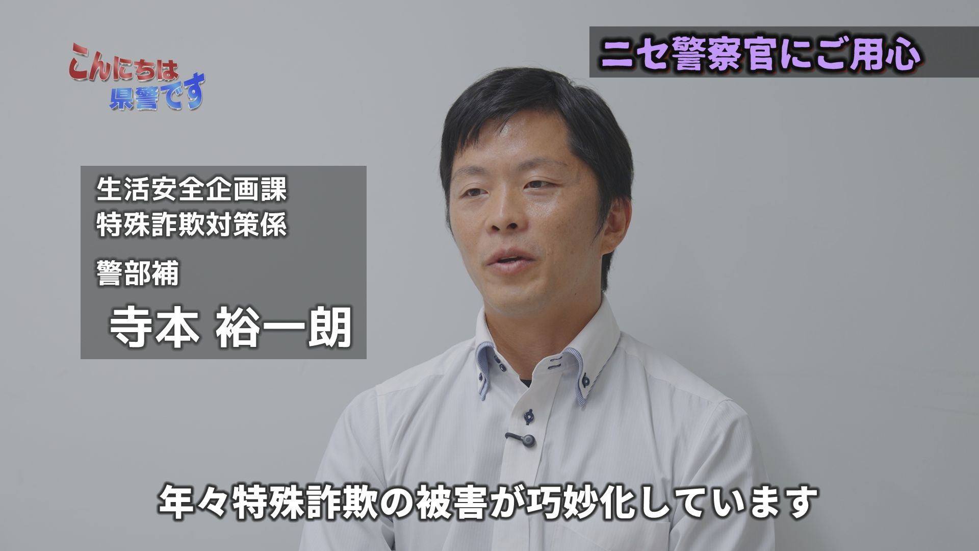 今回は「ニセ警察詐欺にご用心」と題して、急増している特殊詐欺の中でも、ニセ警察官による手口について特集しました。