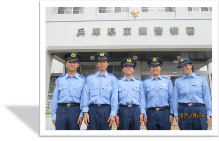やや緊張した面持ちながらも、市民の皆様の安全と安心を守るとの情熱に燃える若者5名の姿に、全署員が初心を思い起こし、共に「東灘の治安を守る」との決意を新たにしています。