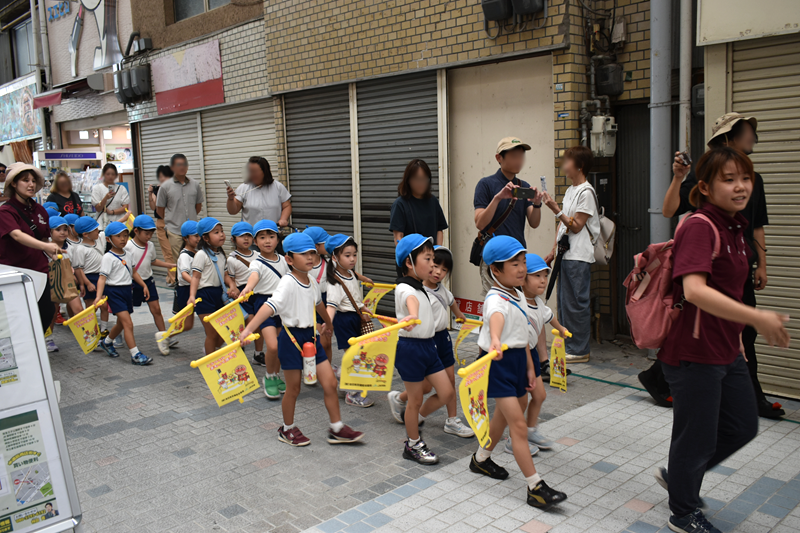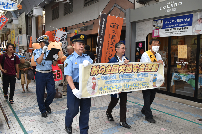 認定こども園光愛児園・水道筋商店街協同組合・灘区役所・灘交通安全協会と一緒にパレードを行いました。