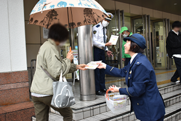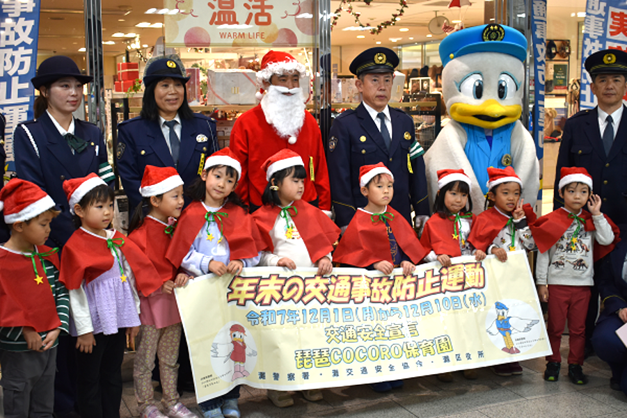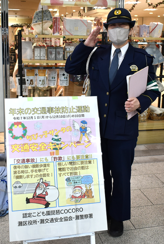 JR六甲道駅で、チビッ子サンタと交通事故防止を呼びかけるキャンペーンを行いました。