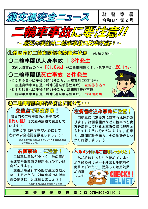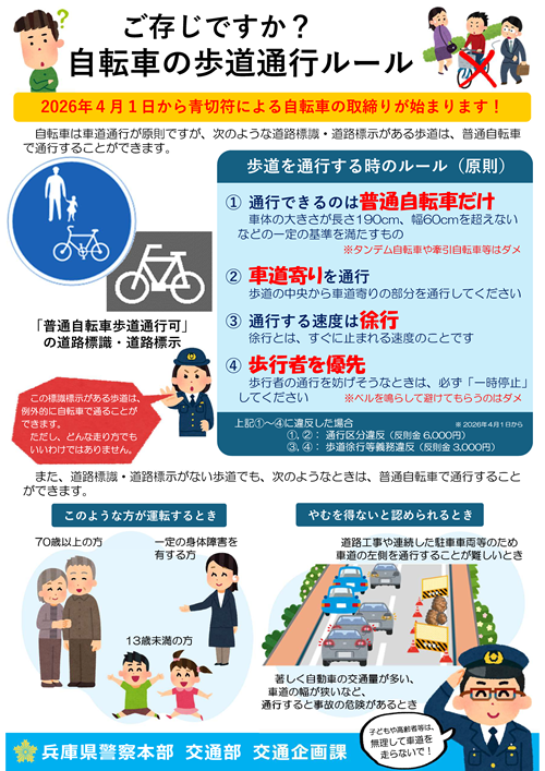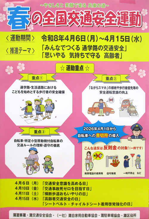自転車の青切符導入に向けた 2026年4月1日から、青切符による自転車の取締りが始まります。 サザンモール六甲で、キャンペーンを行い、市民の皆様に自転車シミュレーターを使って、交通ルールを確認していただきました。 ![]() ![]() ![]() 交通課からのお知らせ 例年、新年度に向けてこの時期は転居される方が多く、灘警察署でも運転免許証の住所変更等(氏名・本籍変更等も含みます)のため窓口が混雑します。そのため、電話でのお問合せの対応をお待たせすることがあります。住所等の変更手続きに必要な書類、受付時間等のお問い合わせにつきましては、 記載事項変更手続き(←ここをクリック) にてご確認いただくとお待たせすることがありません。皆様のご理解とご協力をお願い致します。 ![]() |