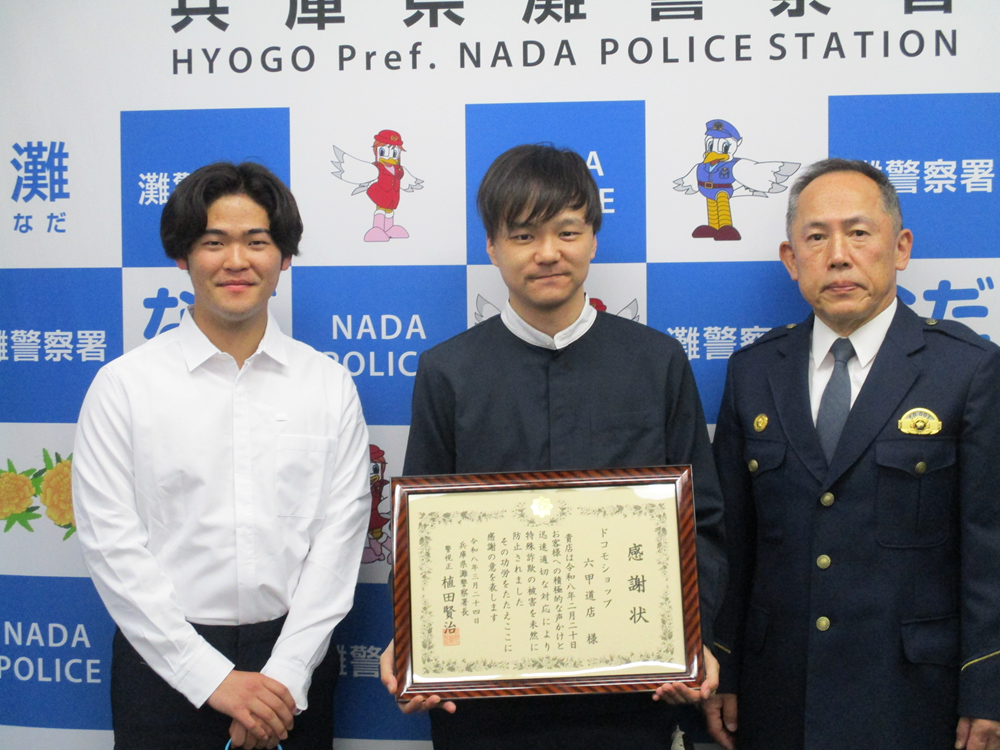 ![]() 携帯電話販売店に感謝状を贈呈しました。 無料の特殊詐欺対策アプリは ↑クリックすると兵庫県警察ホームページ(特殊詐欺被害防止ページ)にリンクします。
