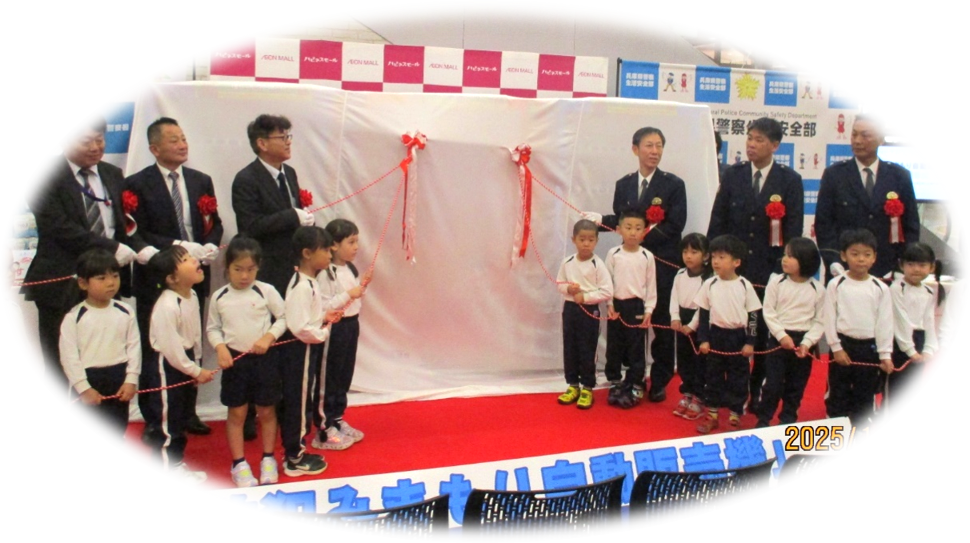 聖ミカエル兵庫幼稚園のみなさんによる交通安全の歌の披露、県警音楽隊の演奏やパトカー・白バイの出発式を行い、交通安全を広く呼びかけました。
