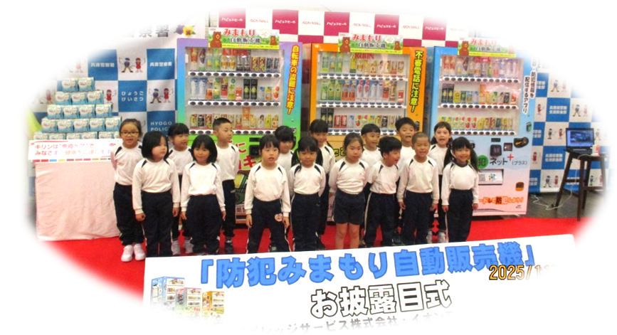 このたび兵庫警察署は、関西キリンビバレッジサービス株式会社と連携を強化し、県下で多発する特殊詐欺や自転車盗の犯罪被害防止のため、ラッピングした防犯みまもり自動販売機を開発し、令和7年11月11日にお披露目式を行いました。
