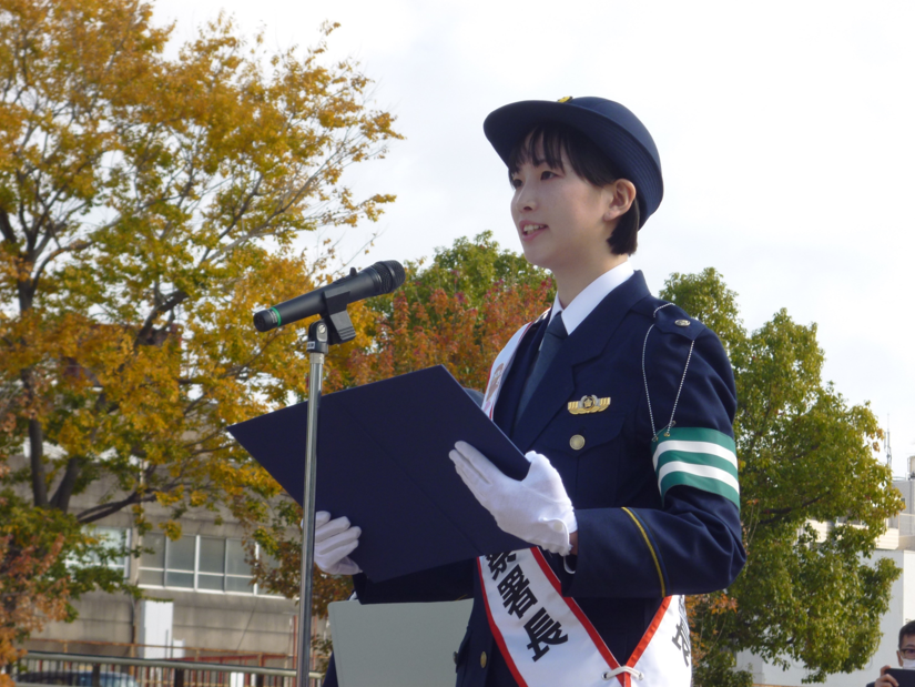 「警察官を騙った詐欺の電話が増えています」「自転車の盗難被害にあわないために、自転車を停める時はカギをしてください」と通行する方に熱心に呼びかけをしてくれました。