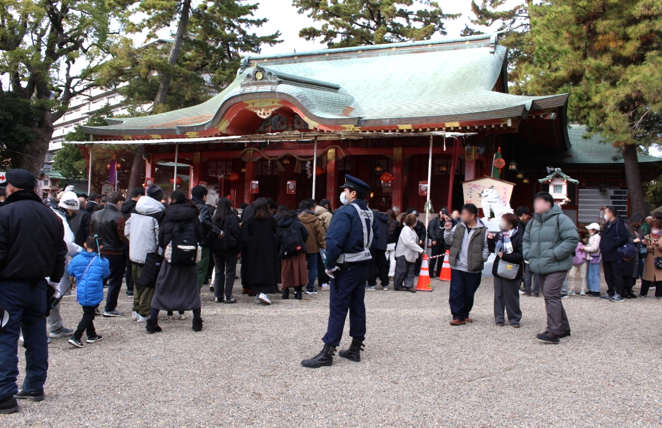 ![]() ![]() 長田神社初詣警戒 長田神社は生田神社と並び、神戸の中でも歴史ある神社で『商売繁盛・開運招福のご利益がある』と正月三が日には多くの参拝客で賑わいます。 ![]()