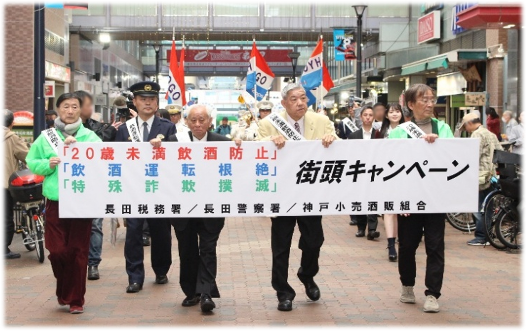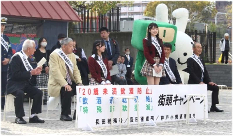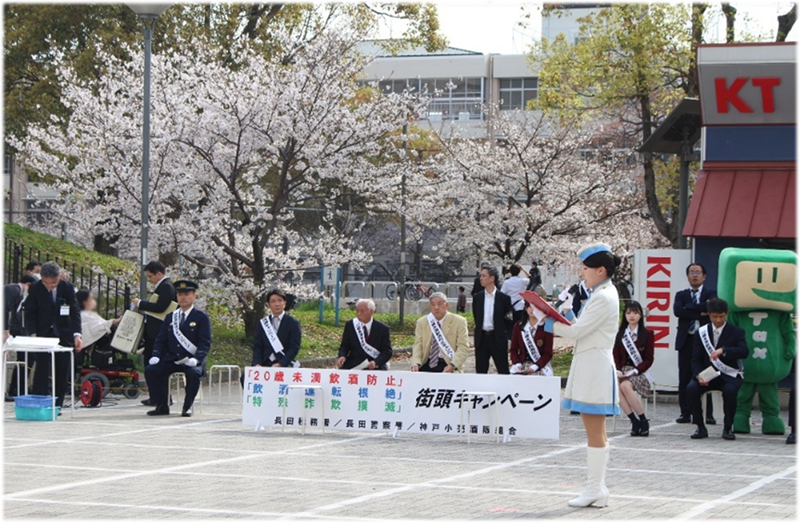 新1年生の皆様、ご入学おめでとうございます。 ![]() 官民一体!各種街頭キャンペーン 咲き誇る桜に見守られ、鉄人広場で、神戸小売酒販組合、大阪国税局、長田税務署、少年課、長田署が協働し『20歳未満飲酒防止・飲酒運転根絶・特殊詐欺撲滅』を訴える街頭キャンペーンを行いました。