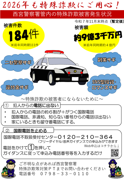 旧年中は、西宮警察署の活動に多大なるご理解とご協力を賜り、心よりお礼申し上げます。