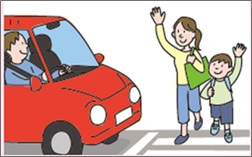 運転者(自転車含む)は、確実に一時停止して歩行者に対して「渡ってください」の動作とアイコンタクトで合図をする