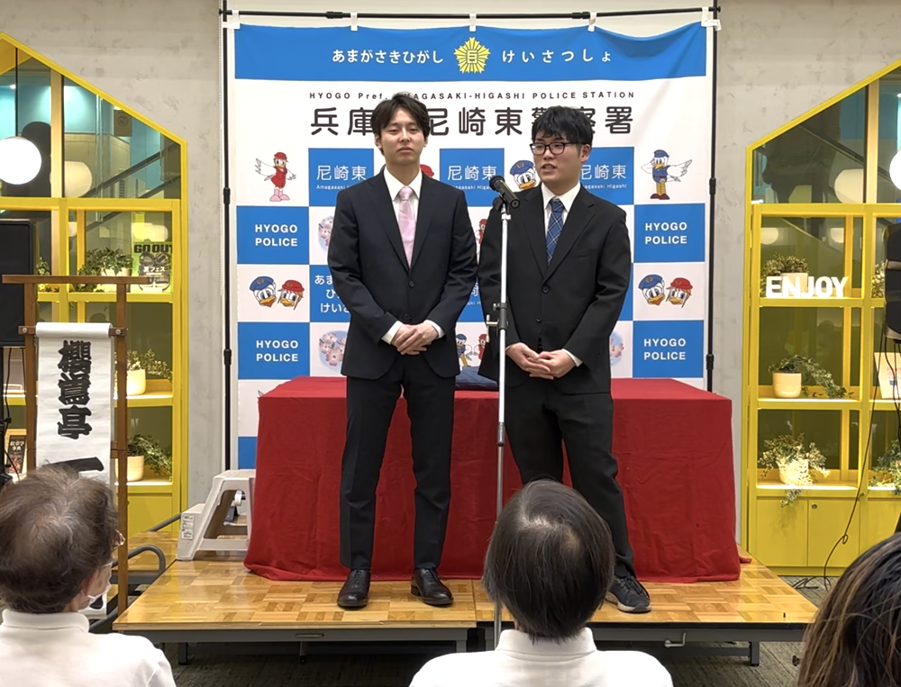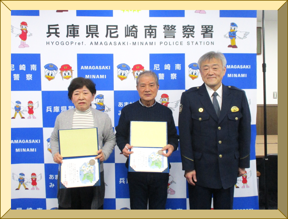 のじぎく賞の伝達 自殺企図阻止の功 ![]() 大声で「死ぬ」と叫びながら踏切に入ろうとする男性を発見するやすぐさま同人のもとに駆け寄り、ご夫婦で連携して暴れる男性を背後から制止する一方、迅速な110番通報によって尊い命を救ってくださった梅木様ご夫妻に、善行を表彰する県の「のじぎく賞」が贈られました。 勇気ある行動に心から ![]()