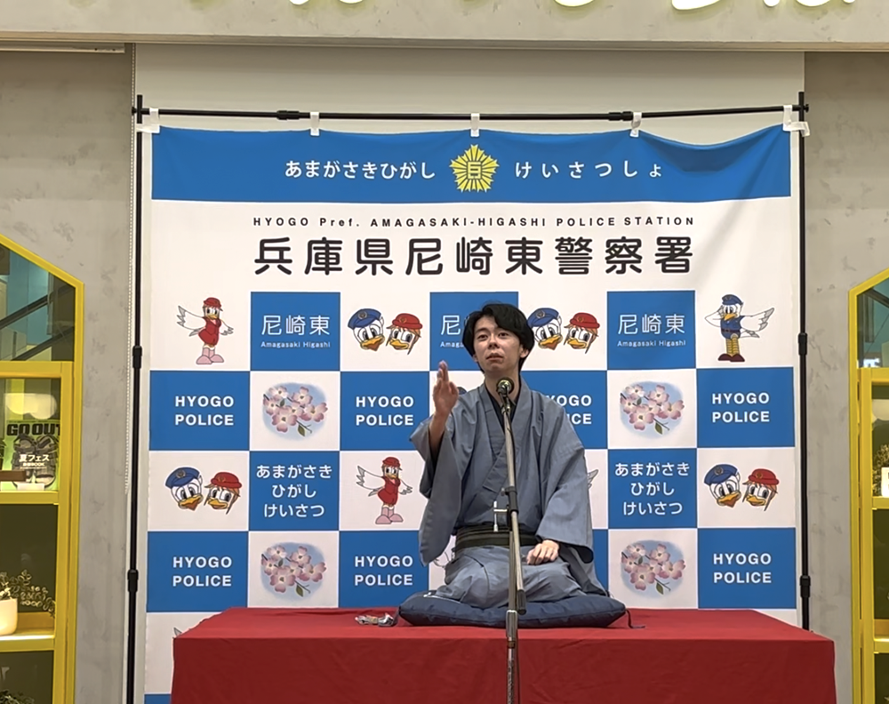 本日は、伝統芸能である『落語』を通じて、交通ルールの大切さを楽しく確認していただこうと、関西学院大学甲山落語研究会の皆さんにお越しいただきました。 ![]() ![]() 演目:いらち俥 ![]() ![]() ![]() 演目:のりのり ![]() 演目:フルスピードで走るのが俺の人生だった ![]() ![]() ![]() 演目:自動車通学 ![]()
