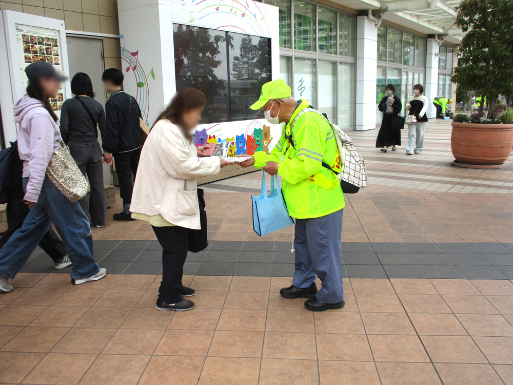 バレンタインデーにあわせて、県立尼崎高等学校ボランティア部の皆さんと交通安全啓発グッズ「チョコチョコ まわりの安全確認」を配布して交通安全を呼びかけました。