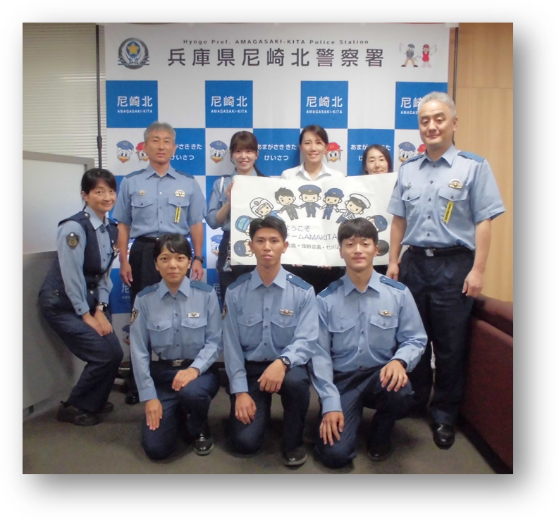 のじぎく賞の贈呈式 線路内に立ち尽くす女性を説得して命を救ったとして、尼崎市の女性に対して「のじぎく賞」が贈られました。 ![]() ![]() 9月26日付けで、3人の新人警察官が警察学校を卒業し、尼崎北警察署の仲間になりました。先輩方と一緒に尼崎の安全・安心を守ってまいります! ![]() ![]()