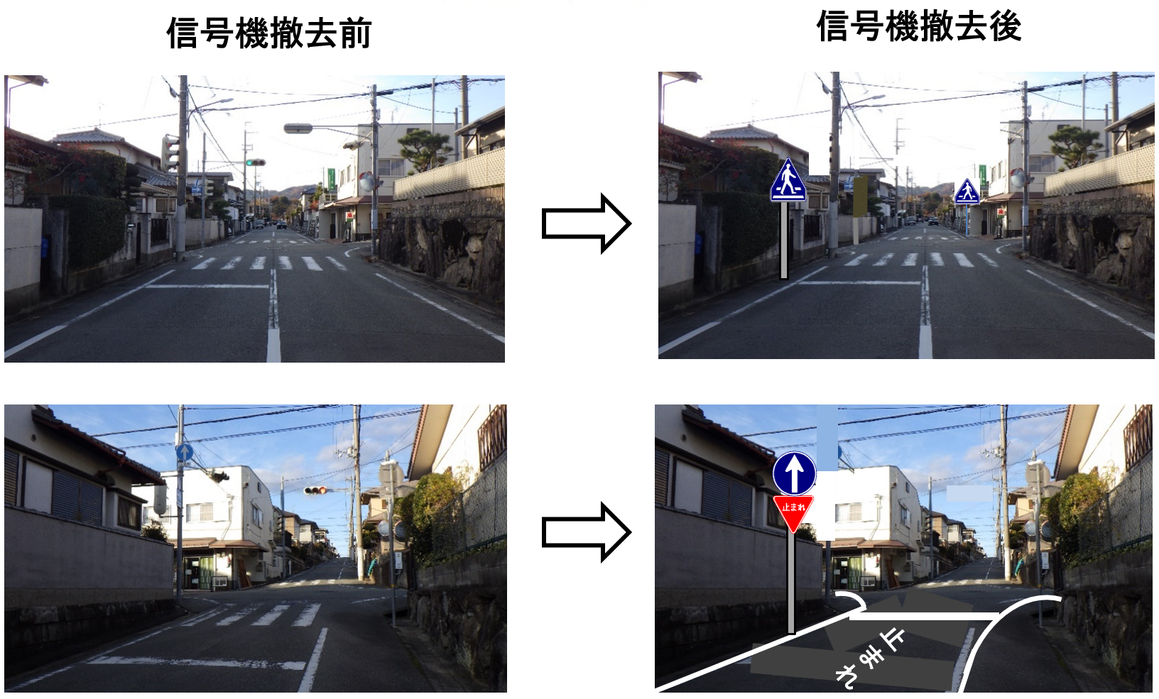 緑台4丁目交差点の信号機撤去予定について 【交通実態】市道の状況 ・ 朝夕時間帯を除き交通閑散、利用者は地域住民が大半であり、通過交通に対する信号機の必要性は殆どありません。 ・ 交差点において必要のない車両の空止まりが発生しており、また、横断歩行者の赤色信号無視が散見されます。 ※ 過去3年間の人身事故及び物損事故の発生はありません。 ![]() ![]() 【 撤去理由 】 交通量が少なく、信号機を撤去して円滑な交通環境を整備する必要があるため。 ★ 道路交通環境の変化等によって、信号機設置の必要性が低下した場合 ★ 信号機は一定以上の交通量がある場合は、交差点の処理能力を高め円滑な交通を実現するものですが、必要性が低下した信号機を撤去しない場合には、信号無視を誘発するほか、車両を不要に停止させる空止まりが起こるなど、交通の安全と円滑に支障を及ぼすおそれがあります。 代替安全対策の実施 ① 一時停止等の交通規制の実施 特殊詐欺の被害防止に関する協定締結式 3月7日 猪名川町役場において、猪名川町と川西警察署の間で「特殊詐欺の被害防止に関する協定締結式」が行われ、猪名川町長と川西警察署長が協定書にそれぞれ署名しました。