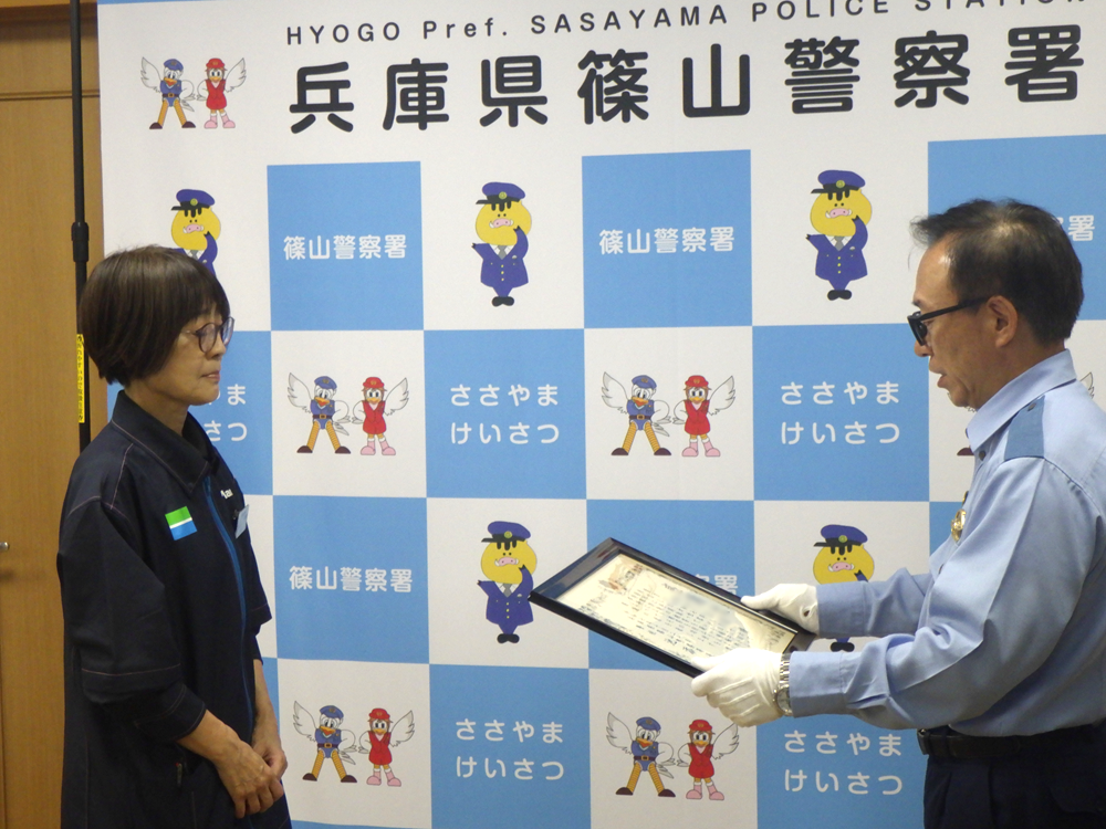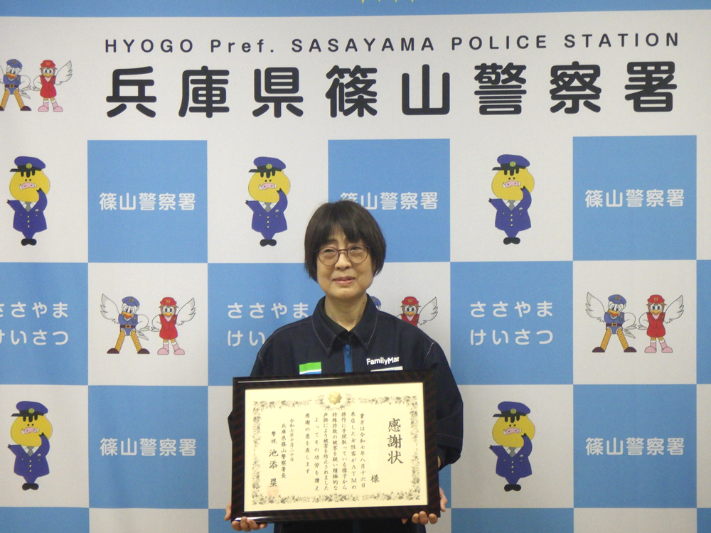 ファミリーマート丹南篠山店マネージャーへ感謝状贈呈