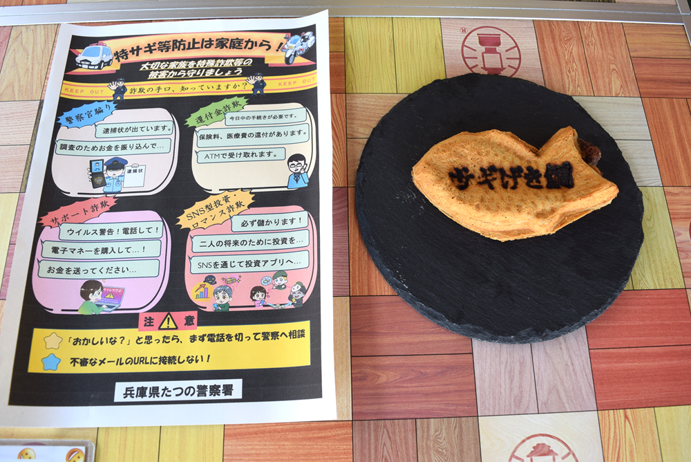 | 【特サギ等の防止は家庭から~サギげき鯛~】 たつの警察署長      「令和7年全国地域安全運動キャンペーン」      風水害・土砂災害に備えましょう 大雨による災害から身を守るには?? 川には絶対に 水に浸かって アンダーパス 土砂災害に注意 警戒レベルについて  風水害や土砂災害は、「5段階の警戒レベル」が使われています。   自転車、安全に正しく乗れていますか?     自転車の危険な運転に   運転中のながらスマホ スマートフォンなどを手で保持して、自転車に乗りながら通話する行為、画面を注視する行為が新たに禁止され、罰則の対象となりました。 酒気帯び運転および幇助   自転車の酒気帯び運転のほか、酒類の提供や同乗・自転車の提供に対して新たに罰則が整備されました。 「ひょうご防犯ネット+(プラス)」って知ってますか? | |||||||||||||||||||||||