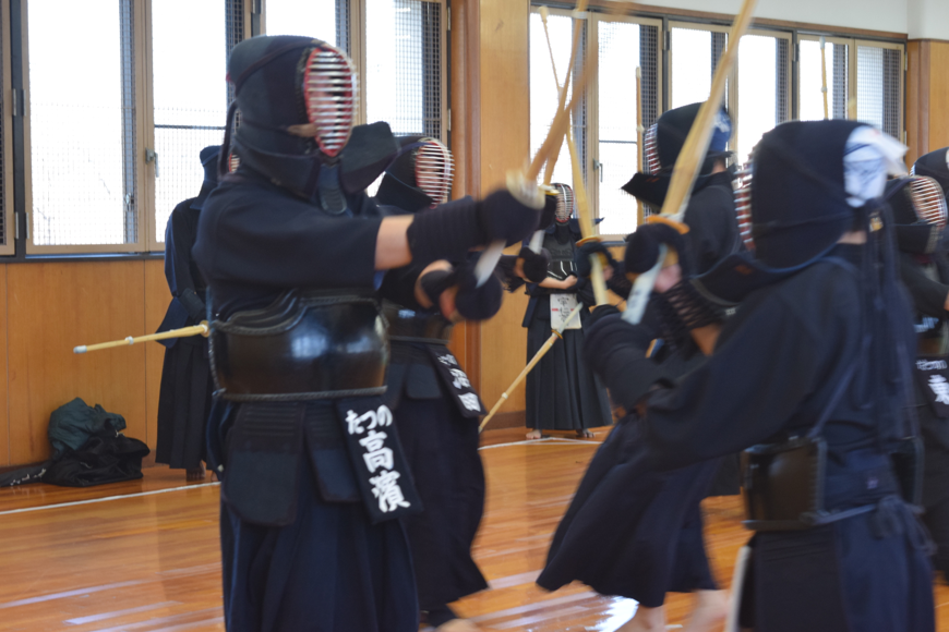 【寒稽古の実施】 冬の厳しい寒さの中で行われ、冬の季語でもある「寒稽古」 たつの警察署長