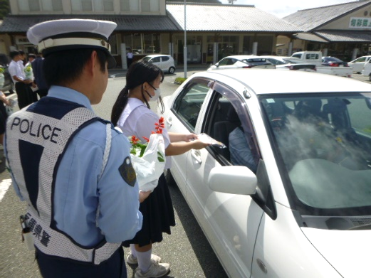 トライやるウィーク実施 警察官の仕事に興味がある管内中学生5名が、鑑識活動・防犯活動などを体験しました。 ![]() 「交通安全こいのぼり」お披露目! 管内幼稚園に協力いただき、交通安全への願いを込めたこいのぼりを作成しました。 ![]() ![]() ![]() ① 道路を横断する時は横断歩道のあるところを渡りましょう! ② 横断歩道を渡る場合、歩行者は接近してくる車のドライバーに横断合図(手を挙げる動作・アイコンタクト)をしましょう! ③ ドライバーは歩行者に「渡ってください」の横断合図(手を挙げる動作とアイコンタクト)をしましょう! ④ 横断歩道は歩行者優先‼ プラス 春の全国交通安全運動啓発活動 相生交通安全協会・自家用自動車協会婦人部、上郡交通安全協会・自家用自動車協会婦人部、相生地域ふれあいの会、上郡地域ふれあいの会の皆さんと協働して「春の全国交通安全運動」啓発活動を実施しました。 ![]() 春の全国交通安全運動は終了しましたが、ドライバーの皆様引き続き安全運転でお願いします。 |