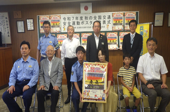 昨年の交通安全協会主催の交通安全ポスターコンクールで兵庫県知事賞を受賞された豊岡市出石中学校2年生 澁谷衛君の作品が、今年の「秋の全国交通安全運動」で兵庫県のポスターに選出されたことから、澁谷君に一日署長を委嘱しました。