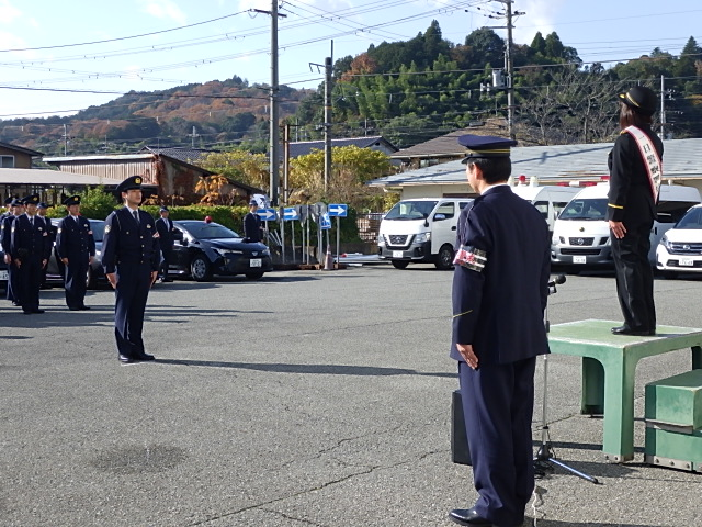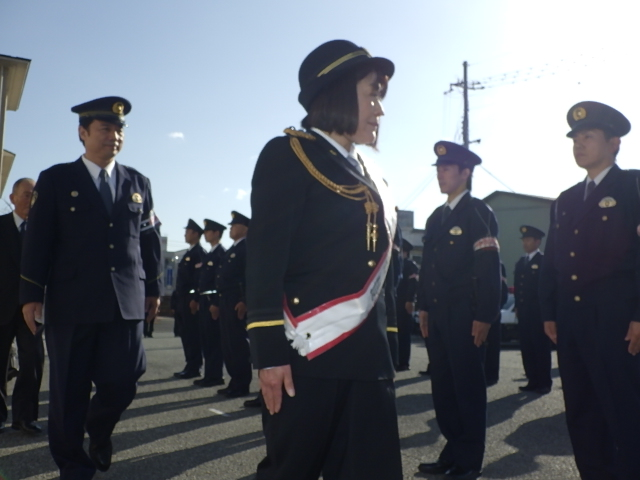 先日(12月1日)豊岡警察署において「年末特別警戒隊視閲式」を開催し、豊岡警察署協議会木下晃子会長を「一日警察署長」にお迎えして、年末特別警戒隊の部隊視閲を実施しました。