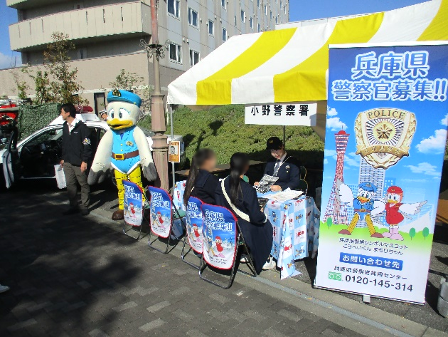 11月15・16日の二日間に渡っておの恋楽市楽座が開催されました。 小野警察署も参加させていただき、県警マスコットこうへいくんとの写真撮影会、パトカーの展示、警察業務の説明会などを通じて、多くの方々に 警察業務を知っていいただく良い機会になったと思います。