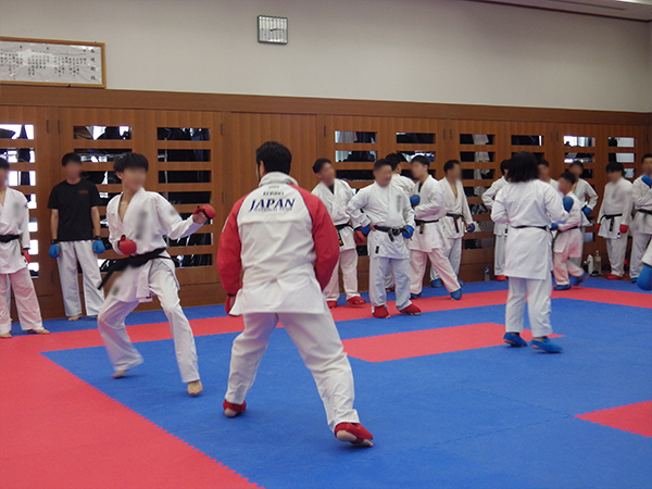 午後からは、参加者と県警空手道部員との合同練習を行いました。