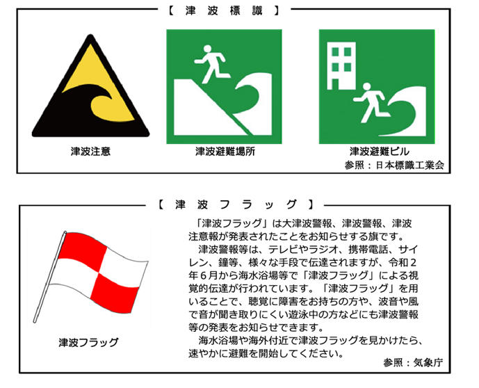海のそばで大きな揺れや弱くても長い揺れを感じたら、津波警報や避難指示が出る前でも、率先して避難しましょう。